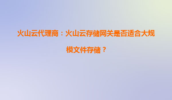 2025-09-16火山云代理商:火山云存儲網關是否適合大規模文件存儲? 一、火山云存儲網關的核心能力 火山云存儲網關是火山引擎推出的混合云存儲服務組件,通過標準協議(如N...