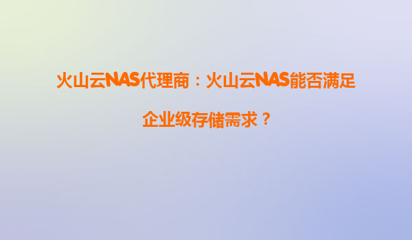 2025-09-16火山云NAS代理商:火山云NAS能否滿足企業級存儲需求? 一、企業級存儲的核心需求 在數字化轉型背景下,企業對存儲系統提出了更高要求:高可用性(99.9%以上SLA)、彈性擴展、安全合規以及高性...