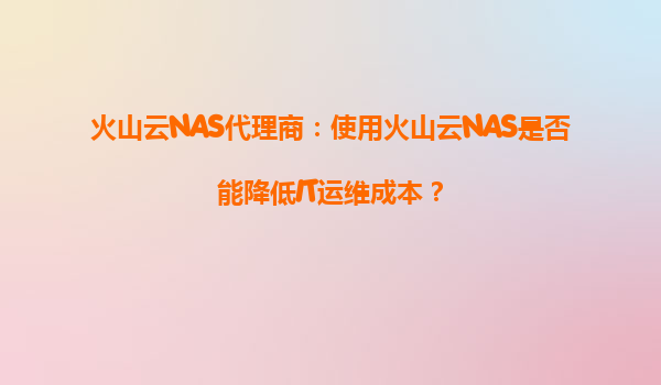 2025-09-16火山云NAS代理商:火山云NAS能為我的業務帶來哪些優勢? 一、火山云NAS的核心價值與企業需求匹配 火山云NAS作為火山引擎旗下的文件存儲服務,專門為企業提供高性能、高可靠的共享文件存儲解決方案。其...