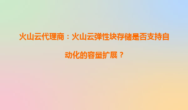 2025-09-16火山云代理商解讀:火山云彈性塊存儲的自動化容量擴展能力與生態優勢 一、火山云彈性塊存儲的核心特性 作為火山引擎(VolcanoEngine)推出的云存儲服務,火山云彈性塊存儲(EBS)以高性...
