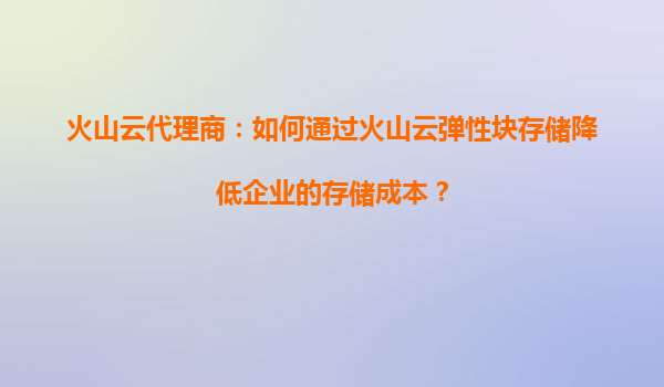 2025-09-16火山云代理商:如何通過火山云彈性塊存儲降低企業的存儲成本? 一、企業存儲成本的核心痛點 在數字化轉型浪潮中,企業數據量呈爆炸式增長,傳統存儲方案面臨三大痛點: ...