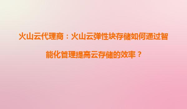 2025-09-16火山云代理商:火山云彈性塊存儲如何通過智能化管理提高云存儲的效率? 一、火山云彈性塊存儲概述 火山云彈性塊存儲(VolcanicBlockStorage)是火山引擎提供的面向企業級應用的高性能、高可靠塊存儲服務。...
