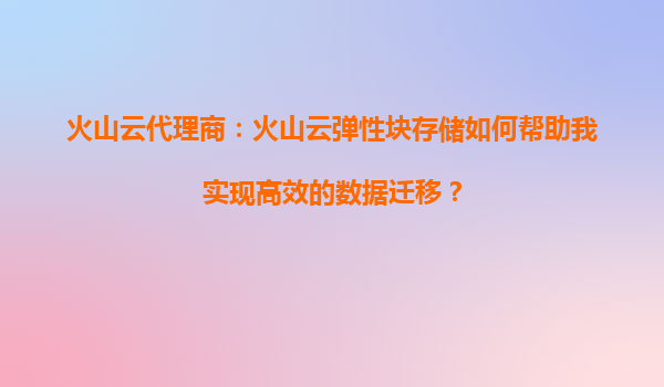2025-09-16火山云代理商:火山云彈性塊存儲如何幫助我實現高效的數據遷移? 一、數據遷移的挑戰與需求 隨著企業數字化轉型加速,數據遷移已成為IT架構升級、業務擴展或云化部署的關鍵環節。然而,傳統遷移方式常面臨以下痛點...