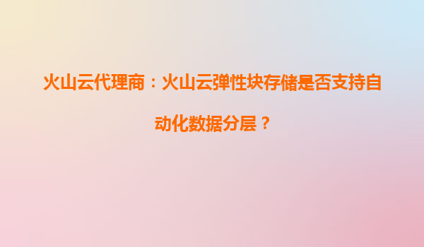 2025-09-16火山云代理商:火山云彈性塊存儲是否支持自動化數據分層? 引言 隨著企業數據量的快速增長,如何高效存儲和管理數據成為企業IT架構設計中的重要課題。自動化數據分層作為一種智能化的存儲管理技術,能...