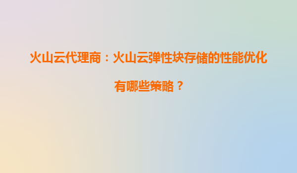2025-09-16火山云代理商:火山云彈性塊存儲的性能優化策略與優勢解析 一、火山云彈性塊存儲的核心價值 作為火山引擎(VolcanoEngine)的核心產品之一,火山云彈性塊存儲(EBS)為云服務器提供高性能、...