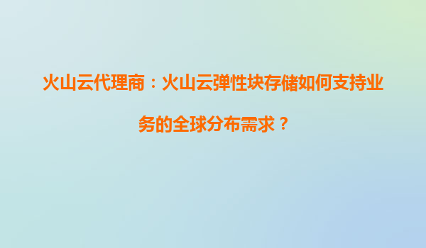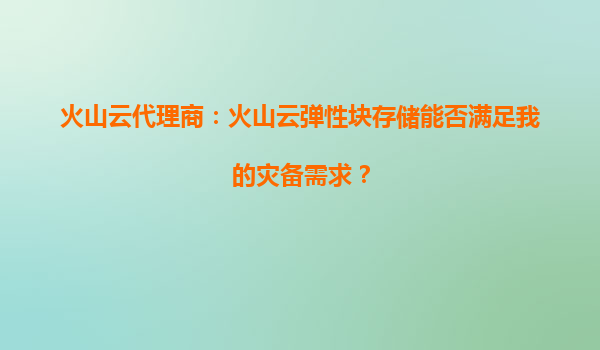 2025-09-06火山云代理商解讀:火山云彈性塊存儲是否支持實時數據同步? 一、火山云彈性塊存儲的實時同步能力解析 作為火山引擎(VolcanoEngine)的核心存儲產品,火山云彈性塊存儲(EBS)確實支持實時...