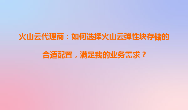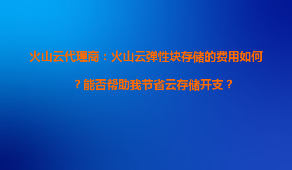 2025-09-05火山云代理商:火山云彈性塊存儲的費用如何?能否幫助我節省云存儲開支? 一、火山云彈性塊存儲的核心費用解析 火山云彈性塊存儲(EBS)采用按需計費模式,主要費用包含三部分:存儲容量費(...