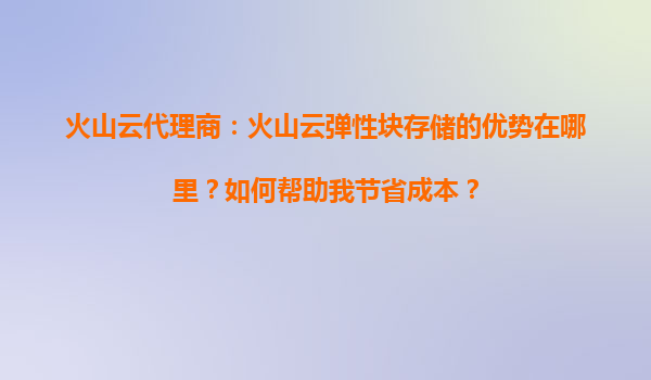 2025-09-04火山云代理商:火山云彈性塊存儲的優勢在哪里?如何幫助我節省成本? 一、火山云彈性塊存儲的核心優勢 火山引擎提供的彈性塊存儲(EBS)服務,是專為云服務器設...