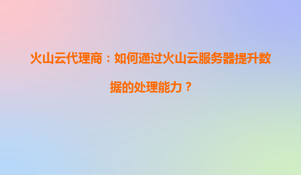 2025-09-03火山云代理商:如何通過火山云服務器提升數據的處理能力? 在數字化轉型的浪潮中,企業對數據處理能力的需求與日俱增。無論是互聯網企業、金融機構,還是制造業和零售業,高效、穩定、安全的數據處理能力...