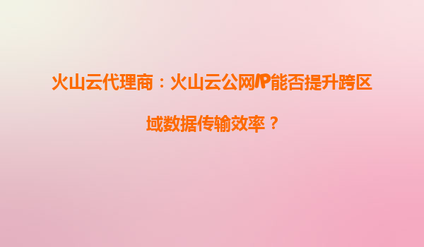 2025-08-29火山云代理商:火山云公網IP能否提升跨區域數據傳輸效率? 一、火山云公網IP的核心價值 火山引擎提供的公網IP服務是云計算基礎設施的重要組成部分,其核心價值在于為企業和開發者提供穩定、高效且...