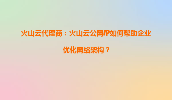 2025-08-30火山云代理商:火山云公網IP如何幫助企業優化網絡架構? 一、企業網絡架構的挑戰與需求 在數字化轉型浪潮下,企業對網絡架構的要求日益提高。傳統網絡架構常面臨以下痛...