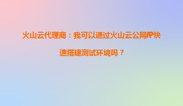 2025-08-30火山云代理商指南:如何通過公網IP快速搭建測試環境? 一、火山云公網IP的核心優勢 火山引擎提供的公網IP服務具備以下核心能力,可顯著提升測試環境搭建效率: 秒級分配:通過控制臺...