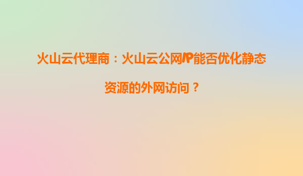 2025-08-30火山云代理商:火山云公網IP能否優化靜態資源的外網訪問? 一、火山云公網IP的核心優勢 火山引擎(VolcanoEngine)作為字節跳動旗下的云計算服務平臺,其公網IP服務具備高性能、低延遲和全球覆蓋的...