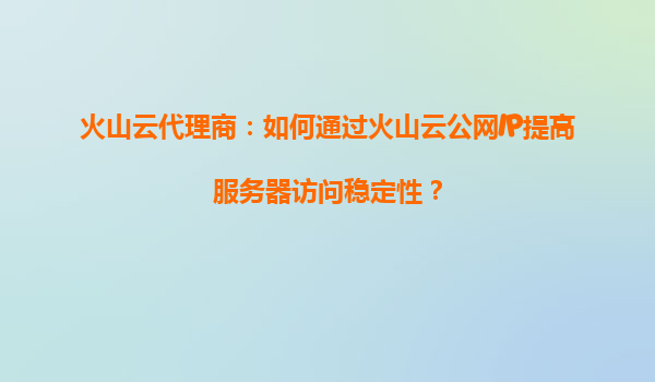 2025-08-30火山云代理商:如何通過火山云公網IP提高服務器訪問穩定性? 一、火山云公網IP的核心優勢 火山引擎提供的公網IP服務具備高性能、低延遲和全球覆蓋的特點。其基于BGP多線智能路由技術,能夠自動選擇最優網絡...