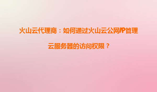 2025-08-29火山云代理商指南:如何通過火山云公網IP管理云服務器訪問權限 一、火山云公網IP的核心價值 火山引擎(VolEngine)作為字節跳動旗下的云計算服務平臺,其公網IP...