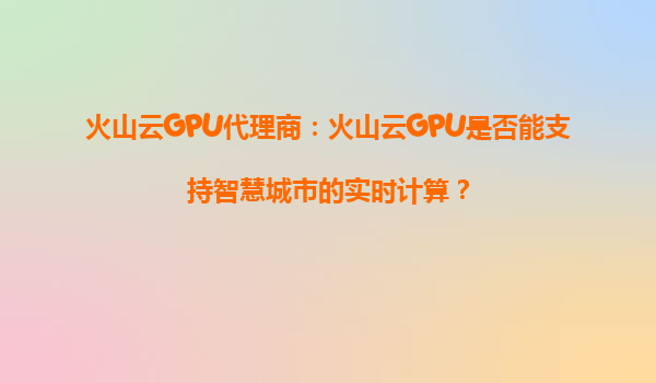 2025-08-28火山云GPU代理商:火山云GPU是否能支持智慧城市的實時計算? 一、智慧城市與實時計算的挑戰 智慧城市的核心在于通過物聯網、大數據和人工智能等技術,實現城市管理的智能化和高效化。其中,實時計...