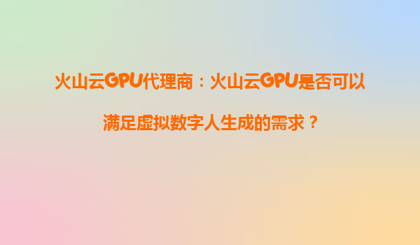 2025-08-28火山云GPU代理商:火山云GPU是否可以滿足虛擬數字人生成的需求? 一、虛擬數字人生成的技術需求 虛擬數字人(VirtualDigitalHuman)是近年來人工智能和計算機圖形學領域的熱門應用,其核心是通過3D建模、...