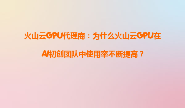 2025-08-28火山云GPU代理商:為什么火山云GPU在AI初創團隊中使用率不斷提高? 引言 近年來,隨著人工智能技術的快速發展,AI初創團隊對高性能計算資源的需求急劇增長。火...