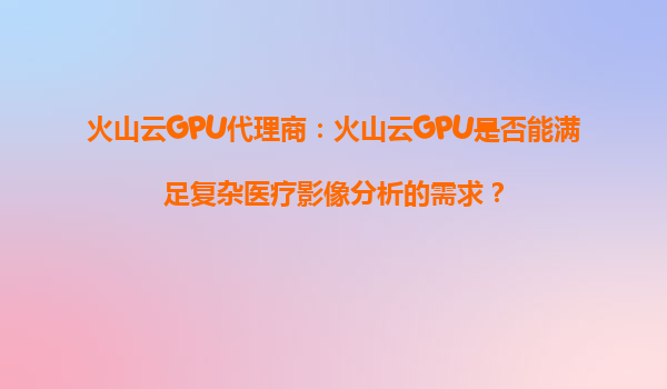 2025-08-27火山云GPU代理商:火山云GPU能否滿足復雜醫療影像分析的需求? 一、醫療影像分析的挑戰與GPU的重要性 隨著人工智能技術在醫療領域的深入應用,醫療影像分析已成為輔助診...