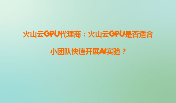 火山云GPU代理商:火山云GPU是否適合小團隊快速開展AI實驗? 一、火山云GPU的核心優勢 火山云GPU作為火山引擎(字節跳動旗下云計算服務)提供的彈性計算服務,其核心優勢在于高性能、靈...