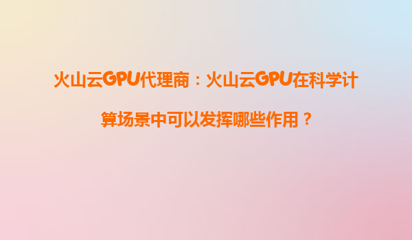 2025-08-26火山云GPU代理商:火山云GPU在科學計算場景中的核心作用與優勢 一、科學計算場景的GPU需求 科學計算領域對算力的需求日益增長,尤其在機器學習、氣候模擬、生物...