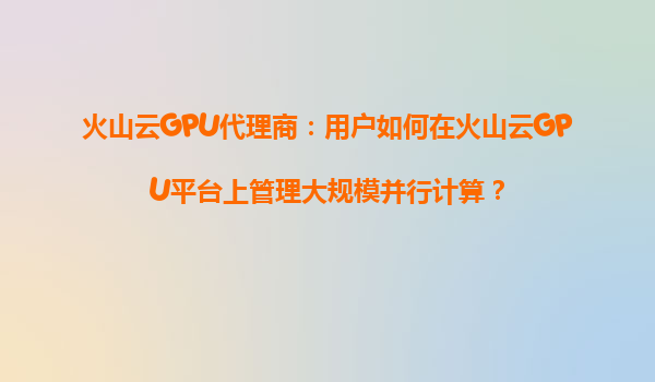2025-08-26火山云GPU代理商:用戶如何在火山云GPU平臺上管理大規模并行計算? 引言 隨著人工智能、深度學習和高性能計算(HPC)的快速發展,大規模并行計算的需求日益增長...