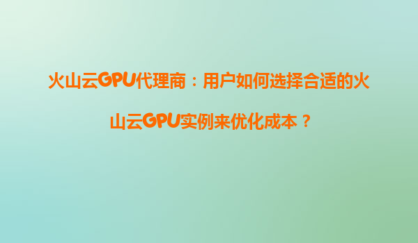 2025-08-26火山云GPU代理商:用戶如何選擇合適的火山云GPU實例來優化成本? 引言 隨著人工智能、深度學習和大規模數據處理的快速發展,GPU計算資源的需求急劇增加。火山云...