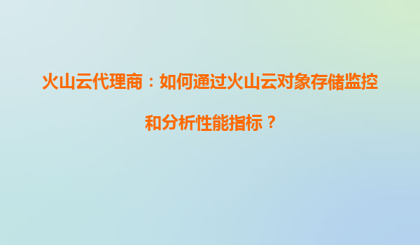 2025-08-19火山云代理商指南:如何通過火山云對象存儲監控和分析性能指標 一、火山云對象存儲的性能監控核心價值 在數字化轉型浪潮中,企業對云存儲的需求不僅限于基礎的數據存儲功...