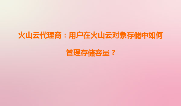 2025-08-19火山云代理商指南:用戶如何在火山云對象存儲中高效管理存儲容量 引言 隨著數據量的爆炸式增長,企業如何高效、安全地管理存儲資源成為關鍵挑戰。火山引擎作為字節跳動旗下的云計算服務平臺,其火山云對象...