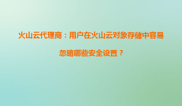2025-08-17火山云代理商指南:用戶在使用火山云對象存儲時容易忽略的安全設置及解決方案 引言:火山云對象存儲的安全價值 在大數據時代,對象存儲已成為企業數據管理的核心基礎設施。作為火山引擎...