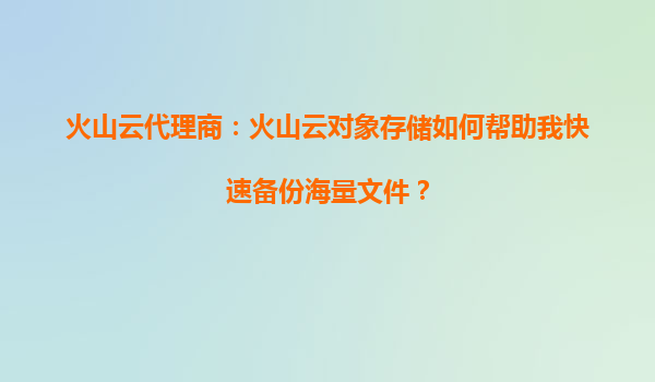 2025-08-17火山云代理商:火山云對象存儲如何幫助我快速備份海量文件? 一、海量文件備份的痛點與需求 在數字化時代,企業對海量文件(如設計圖紙、監控視頻、數據庫備份等)的存儲需求呈指數級增...