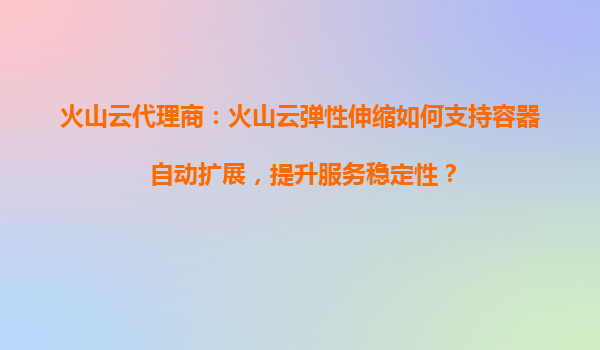 2025-08-16火山云代理商:火山云彈性伸縮如何支持容器自動擴展,提升服務穩定性? 引言 在當今快節奏的數字化時代,企業需要更加靈活、高效的云計算解決方案以滿足業務需...