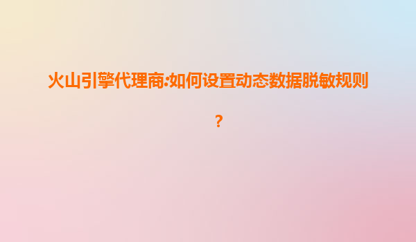 2025-07-16火山引擎代理商:如何設置動態數據脫敏規則 一、火山引擎在數據安全領域的核心優勢 作為字節跳動旗下的云服務平臺,火山引擎憑借其在海量數據處理和隱私保護方面的技術積累,為代理商提供了以下差異化...