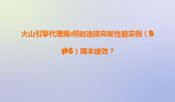 2025-07-12火山引擎代理商:何時選擇突發性能實例(BMS)降本增效? 一、什么是突發性能實例(BMS)? 突發性能實例(BurstablePerformanceInstance,簡稱BMS)是云計算服務中的一種特殊實例類型,其特點是利用CPU...