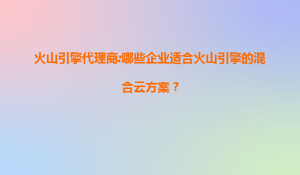 2025-07-09火山引擎代理商:哪些企業適合火山引擎的混合云方案? 一、為什么選擇火山引擎混合云? 隨著數字化轉型的深入,企業對云計算的需求不再局限于單一的公有云或私有云模式,混合云因其靈活...