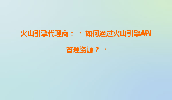 2025-07-07火山引擎代理商:如何通過火山引擎API管理資源? 引言 在當今數字化時代,企業對于云計算資源的需求日益增長,如何高效、便捷地管理這些資源成為企業關注的重點...