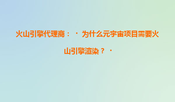 2025-07-06火山引擎代理商:為什么元宇宙項目需要火山引擎渲染? 引言:元宇宙的渲染挑戰 隨著元宇宙概念的爆發式發展,虛擬世界的構建對實時渲染技術提出了極高要求。無...