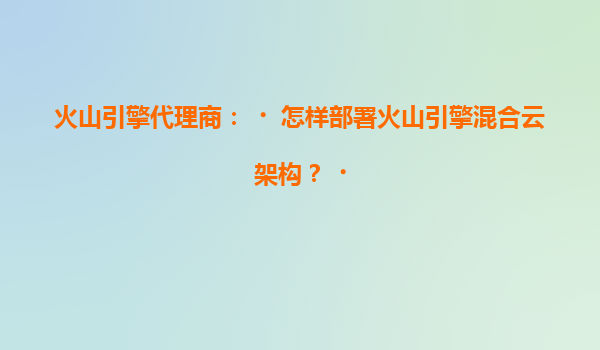 2025-07-06火山引擎代理商:如何高效部署火山引擎混合云架構 一、混合云架構的核心價值 混合云架構結合了公有云的彈性和私有云的安全性,已成為企業數字化轉型的主流選擇。火山引擎作為字節跳動旗下的云服務平臺,通...
