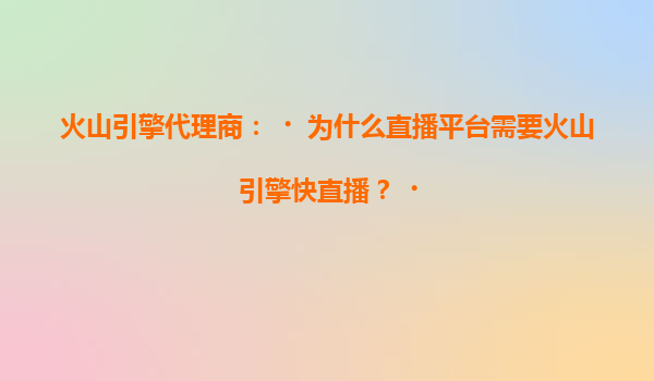 2025-07-05火山引擎代理商:為什么直播平臺需要火山引擎快直播? 引言:直播行業的挑戰與需求 隨著移動互聯網的普及和5G技術的快速發展,直播行業迎來了爆發式增長。無論是電商直播、游戲直播、教...