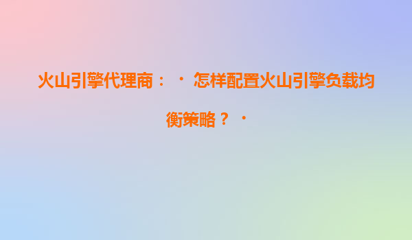 2025-07-05火山引擎代理商:怎樣配置火山引擎負載均衡策略? 一、火山引擎負載均衡的核心優勢 火山引擎作為字節跳動旗下的云服務平臺,其負載均衡服務(CLB)憑借以下優勢成為企業上云的關鍵組件: 高性...