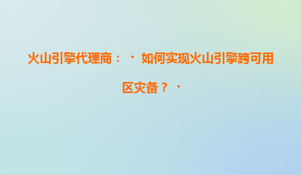 2025-07-05火山引擎代理商:如何實現火山引擎跨可用區災備? 一、火山引擎跨可用區災備的核心價值 火山引擎作為字節跳動旗下的云服務平臺,其跨可用區災備能力是企業實現業務高可用的關鍵。通過多...