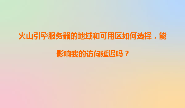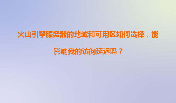 2025-11-05火山引擎服務器的地域和可用區如何選擇,能影響我的訪問延遲嗎? 1.引言:地域和可用區的重要性 在選擇云計算服務時,服務器的地域(Region)和可用區(AvailabilityZone,AZ)是影響性能、延遲和高...