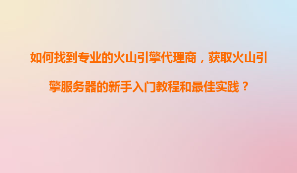引言:為什么選擇火山引擎? 在云計算領域,火山引擎憑借其高性能、穩定性和靈活的解決方案,成為了眾多企業和開發者的首選。對于新手來說,如何快速入門并使用火山引擎的服務器服務,以及如何找到專業的代理商來...