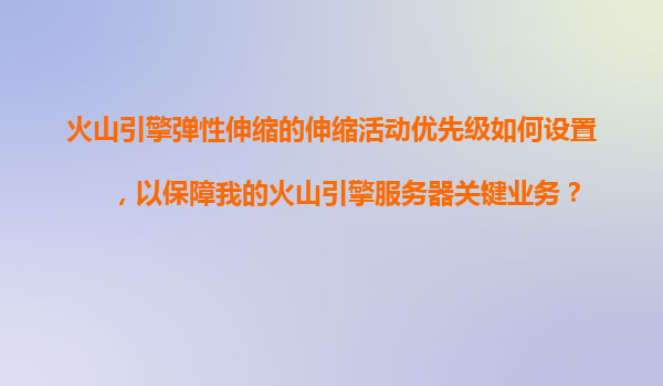 4008-020-360 火山引擎彈性伸縮的伸縮活動(dòng)優(yōu)先級(jí)設(shè)置與關(guān)鍵業(yè)務(wù)保障策略 一、火山引擎彈性伸縮的核心優(yōu)勢 火山引擎作為字節(jié)跳動(dòng)推出的企業(yè)級(jí)云服務(wù)平臺(tái),其彈性伸縮服務(wù)(AutoScaling)在資源調(diào)度和業(yè)務(wù)連...