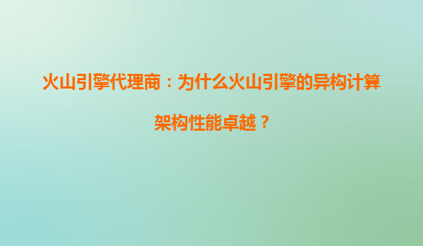 2025-06-19火山引擎異構計算架構:性能卓越的引擎,驅動智能未來 引言:算力時代的新范式 在人工智能、大數據分析和實時渲染等高性能計算場景爆發的今天,傳統單一CPU架構已難以滿足多元化算力需求...
