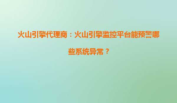 2025-04-07火山引擎監控平臺:全方位預警系統異常,助力企業穩定運行 一、火山引擎監控平臺能預警哪些系統異常? 作為字節跳動旗下的云服務平臺,火山引擎監控平臺通過多維數據采集和智能分析能力,可快速識別并...