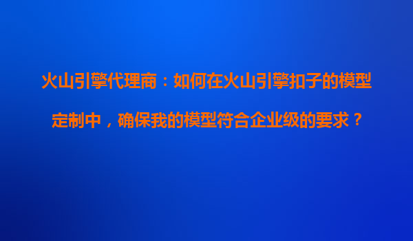 2025-10-27火山引擎代理商:如何在火山引擎扣子的模型定制中,確保模型符合企業級要求? 引言 隨著人工智能技術的快速發展,企業對于定制化模型的需求日益增長。火山引擎作為字節跳動旗下的云服務平臺,其扣子(VolcE...