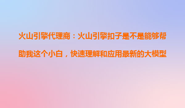 2025-10-27火山引擎扣子:助力技術小白輕松駕馭大模型 在大模型技術快速發展的今天,許多非技術背景的用戶也對AI應用充滿興趣,卻苦于技術門檻過高。作為火山引擎的代理商,我們認為火山引擎扣子(VolcanoEngineCoze)恰好...