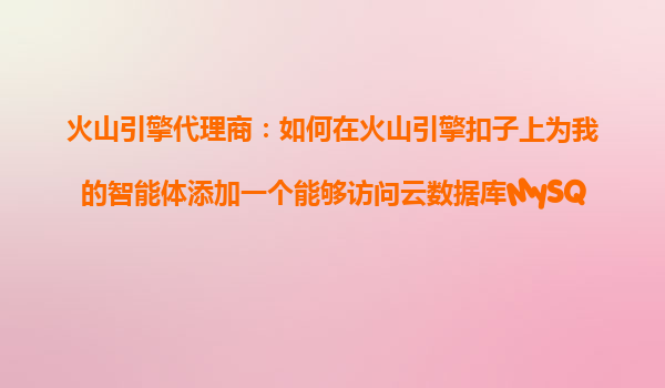 2025-10-26火山引擎代理商指南:為智能體集成云數據庫MySQL版工具 火山引擎扣子平臺的核心優勢 作為字節跳動旗下的云服務平臺,火山引擎憑借其高可靠性、彈性擴展和一站式解決方案,成為企業智能化轉型的首選。...