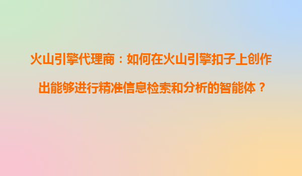 2025-10-26火山引擎代理商:如何在扣子上打造精準信息檢索與分析型智能體 火山引擎智能體平臺的核心優勢 作為字節跳動旗下的云計算服務平臺,火山引擎為開發者提供了強大的扣子(Coze)智能體開發平臺。其核心優勢在...